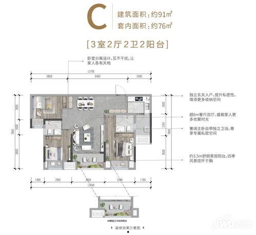 首先,咱们得说说这个户型的空间布局。91平米的面积,对于3房2卫来说,可以说是相当紧凑了。但是,紧凑并不意味着拥挤,反而因为空间利用率高,让生活变得更加便利。
